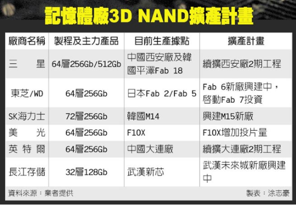 雖然業(yè)界仍看好2018年下半年NAND Flash市場供給將出現(xiàn)逆轉(zhuǎn),再度呈現(xiàn)供給吃緊及缺貨盛況,但主要存儲器大廠卻已陸續(xù)決定將大幅擴(kuò)充3D NAND產(chǎn)能。